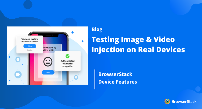 Mobile app testing Testing Media Injection on BrowserStack Real Devices We’re excited to announce that now you can test image and video injection via device camera on BrowserStack real devices to test advanced use cases such as video calls, facial recognition, image searches, and identity verification.