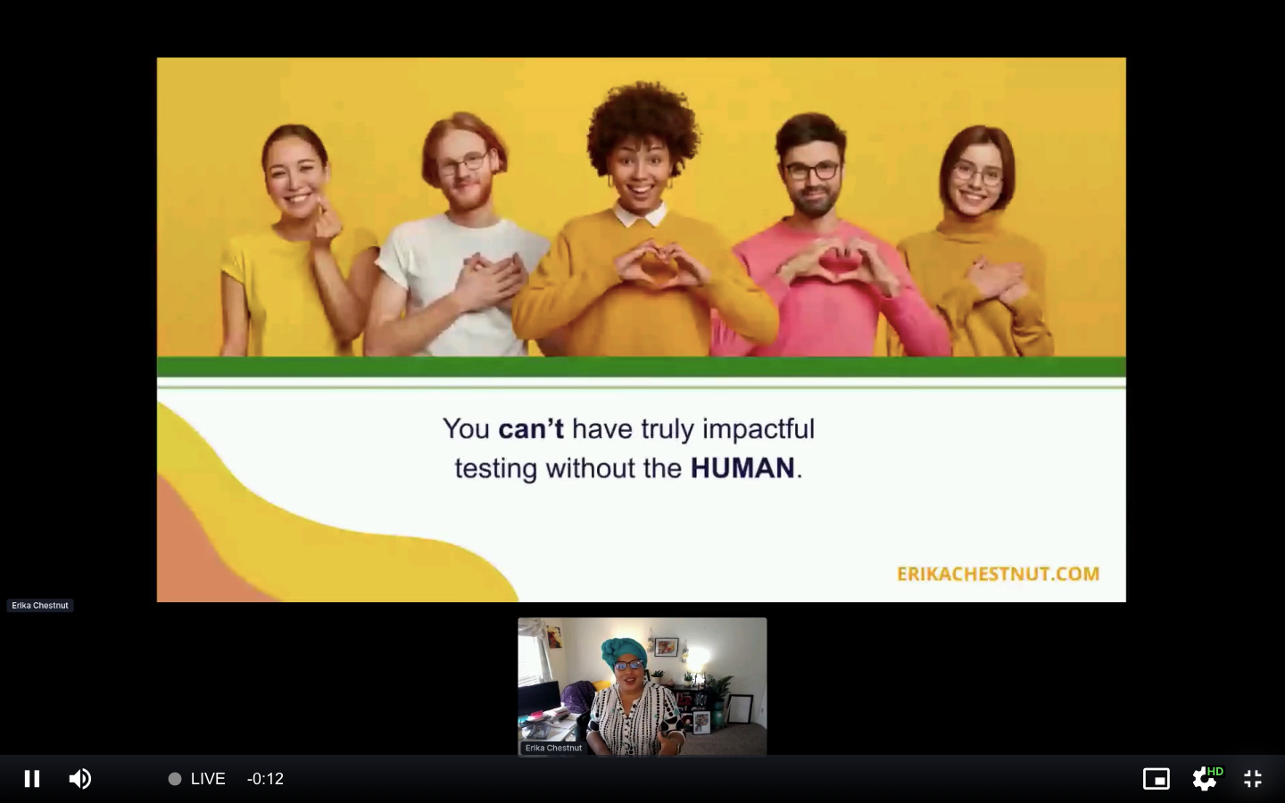 Erika, who clearly won all our hearts, advocates the need for humanual testing—yep, she made that up! She speaks about how impactful testing requires taking the ‘human factor’ into consideration. This approach puts value on us, as humans, in the testing process.