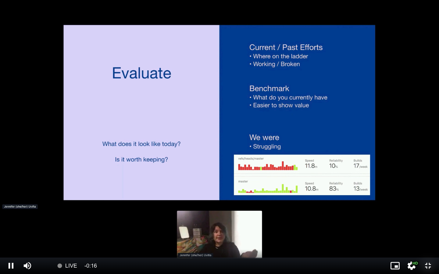 Jennifer defines ‘culture’ as what people do when they’re unprompted. She believes that a good testing culture is the one where people are empowered to create, run and debug tests—and do all of this while owning them, and self-advocating for them.