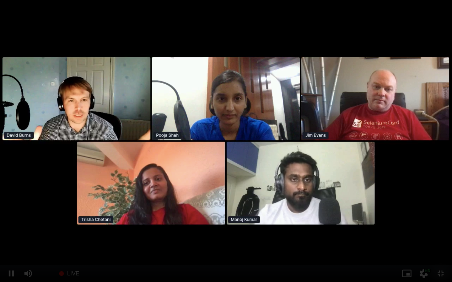 Our panel discussion on Selenium, moderated by David Burns, included experts from some of the best engineering teams—Pooja Shah (MoEngage Inc.), Jim Evans (Salesforce), Trisha Chetani (Adidas), and Manoj Kumar (ThoughtWorks).