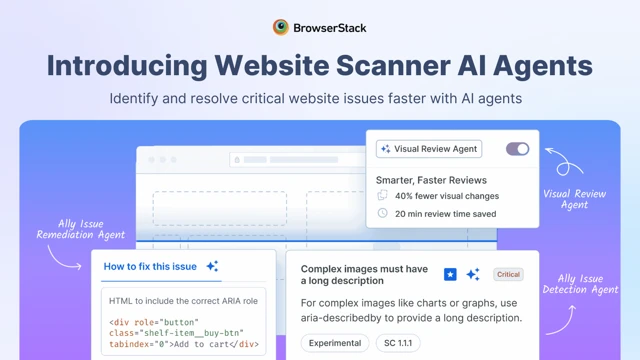 [PRODUCT UPDATE] Three new AI Agents are now live in Website Scanner. The Visual Review Agent cuts review time by 3x, the A11y Issue Detection Agent catches accessibility issues traditional tools miss, and the Remediation Agent helps you fix them fast. Smarter scans, fewer manual reviews.