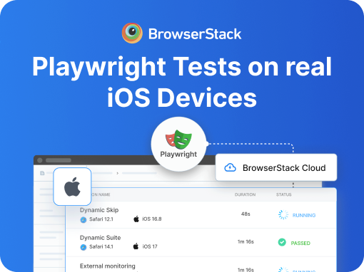 [new launch] BrowserStack Automate now supports Playwright testing on real iOS devices. Expand your test coverage and effortlessly scale across 1,000+ real iOS and Android device-browser combinations. Learn more