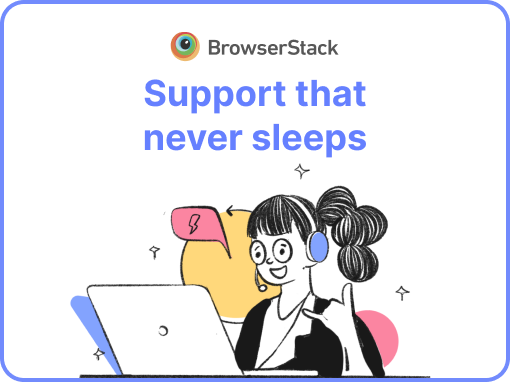 [enhancement] BrowserStack Support is now available 24/7 across email, chat, and phone. We’ve designed our support experience to be available whenever and however you need it. Talk to us