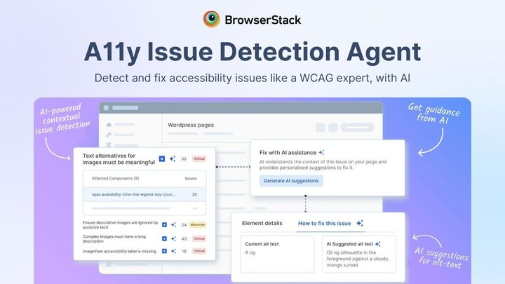 [NEW LAUNCH] Go beyond basic accessibility testing. Meet BrowserStack's new Issue Detection Agent, it's like having a WCAG expert built into your workflow. The AI agent detects complex issues and reduces validation time by mimicking human intelligence.
