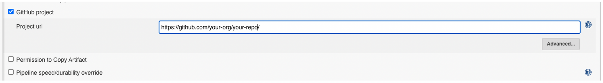 2. Configure the Github Project URL.