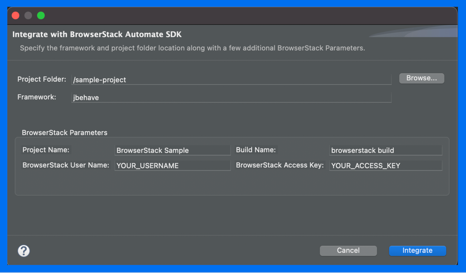 - Configure other parameters like BrowserStack UserName and Access Key.