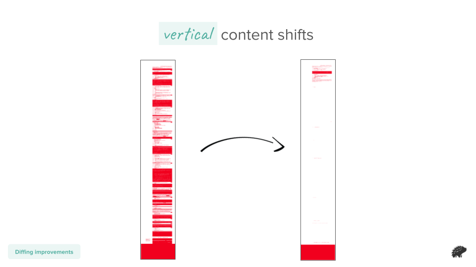 Here we can see a very long page, but only a small part of one icon has been changed. The Diff highlighter allows you to quickly find the diff in your snapshot so you can be on your way faster.