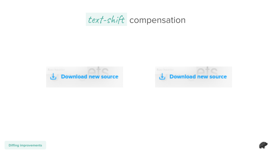 The new Percy Visual Engine uses computer vision to analyze each pixel, thereby eliminating the false positives due to anti-aliasing. With so many browsers offered for rendering, it becomes important to compensate for variations between machines, chip architectures, and GPU non-determinism. Here we can see a difference in anti-aliasing between two different renders in our infrastructure. With Percy Visual Engine, we are able to detect these differences and remove them in your final diff so you can review only the important changes.