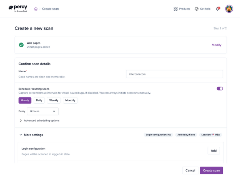 Visual Scanner is a new feature on Percy that automatically scans specified URLs at scheduled intervals to spot visual defects. This allows you to stay ahead of any unexpected visual alterations and ensure your users always experience your website as intended.