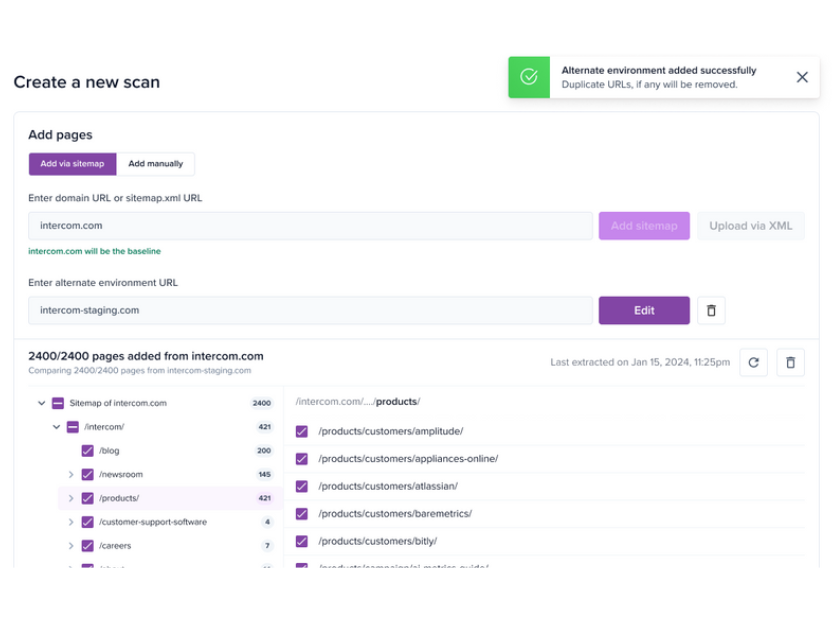Visual Scanner allows you to schedule your scans periodically or trigger them on demand. This ensures you always have up-to-date insights into the visual integrity of your web presence.