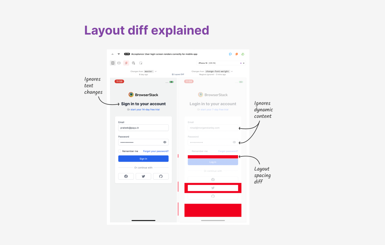 This new feature allows users to evaluate web page layouts for any changes in positioning, styling, and content structure. While layout testing doesn't identify specific content differences between two builds, it precisely highlights visual inconsistencies in element presentation and arrangement. This proves to be an invaluable tool for helping teams maintain a consistent and visually appealing user experience.