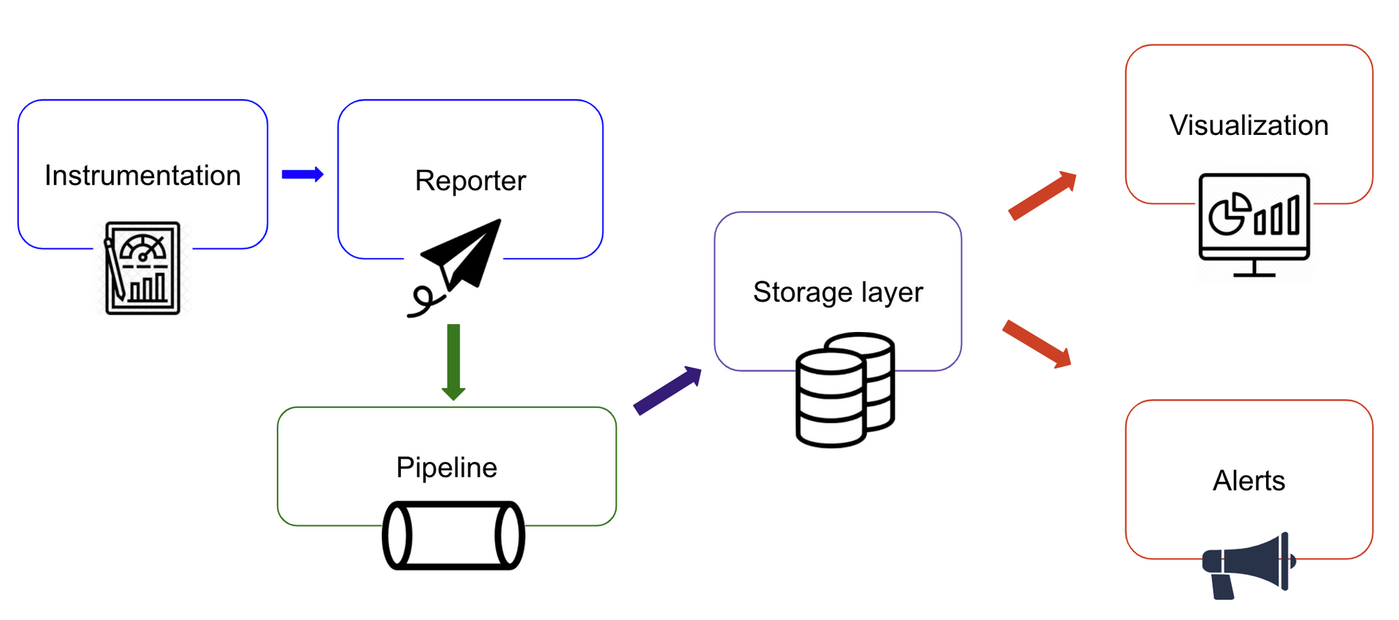 So far, we have covered the instrumentation part of the observability workflow. Making a system observable by instrumenting code is not enough to reap the benefits. Additional components are required as follows: