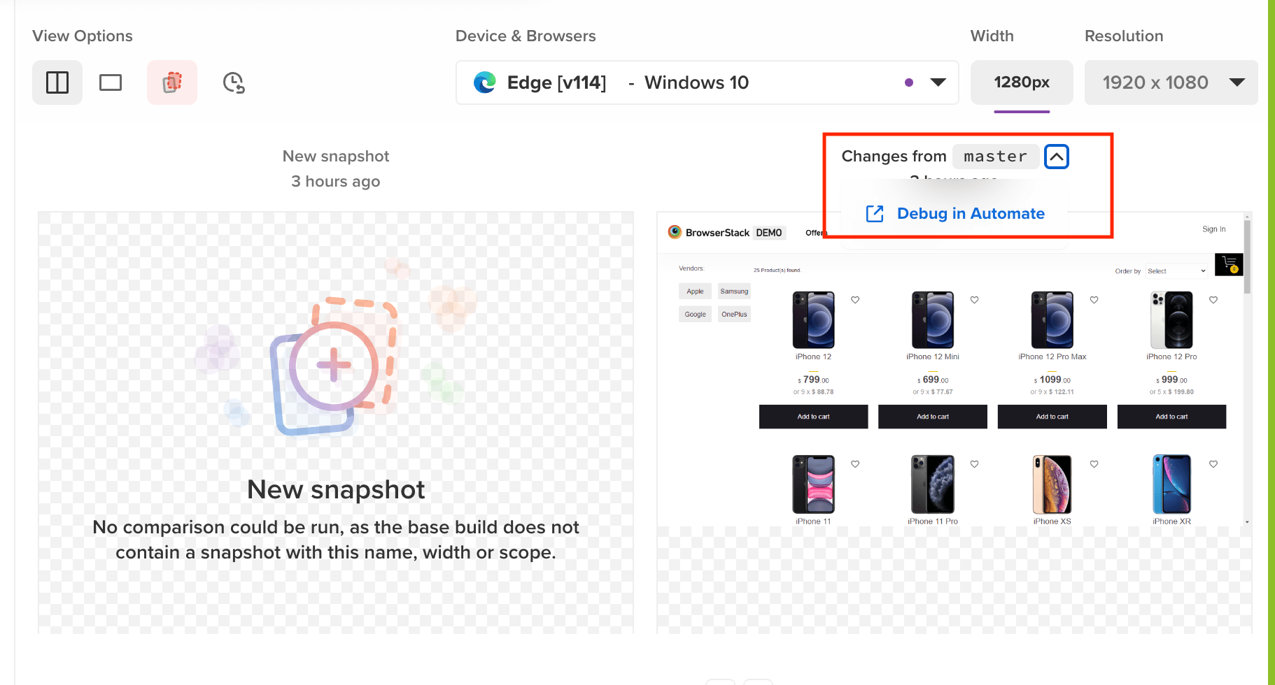 Percy on Automate empowers users to integrate their functional and visual testing into a single pipeline, allowing them to seamlessly capture screenshots during functional test runs and compare them to baseline images. The result is enhanced capability in identifying UI regressions and ensuring the visual integrity of your application.
