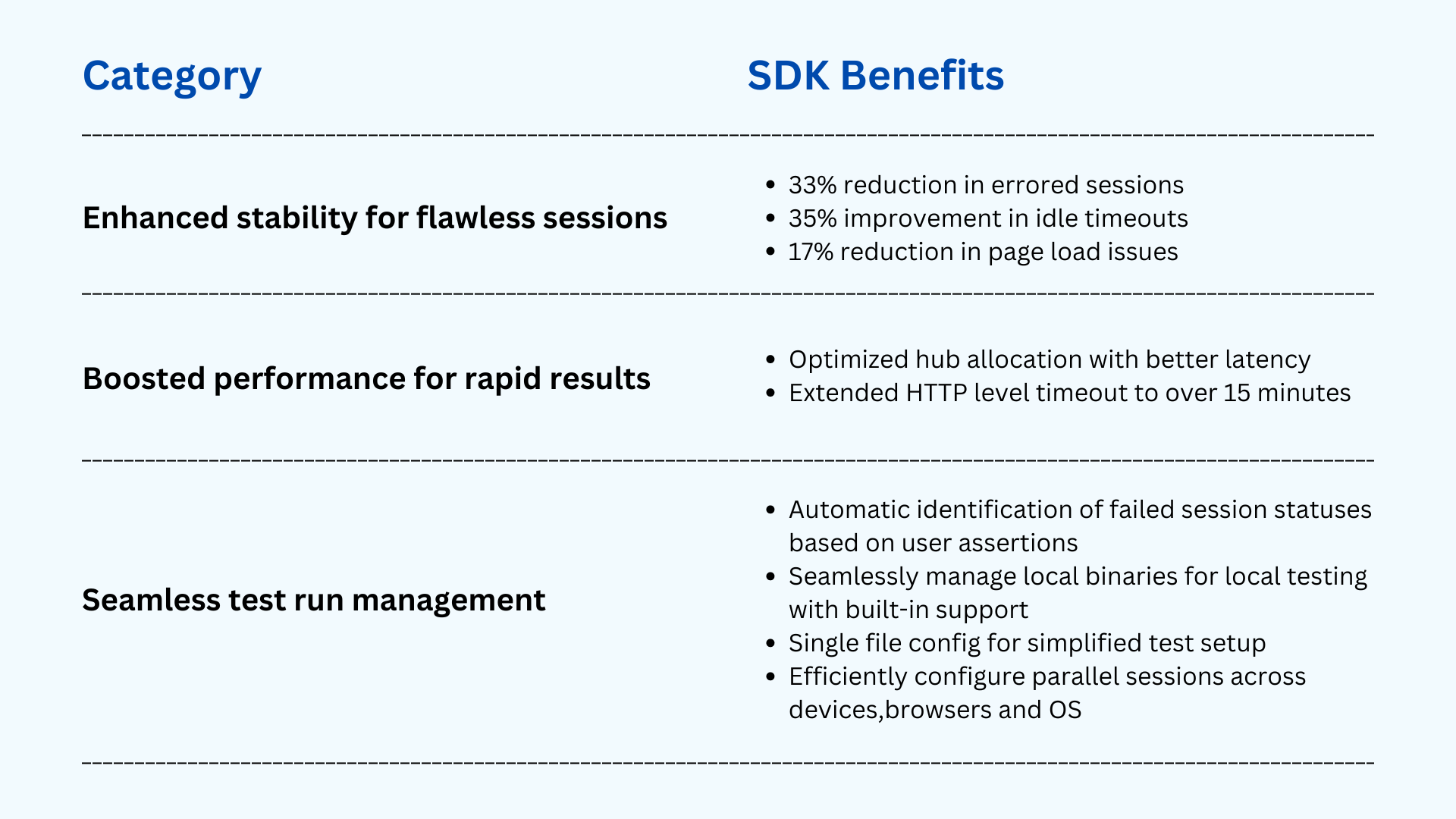 We launched BrowserStack SDK 1.5 years back with the sole vision of accelerating your test automation experience with us. Since then, we have taken considerable strides to power up SDK which translates into minimal code changes, reduced setup times, fewer errored sessions, latency optimization for hub allocation, and much more.