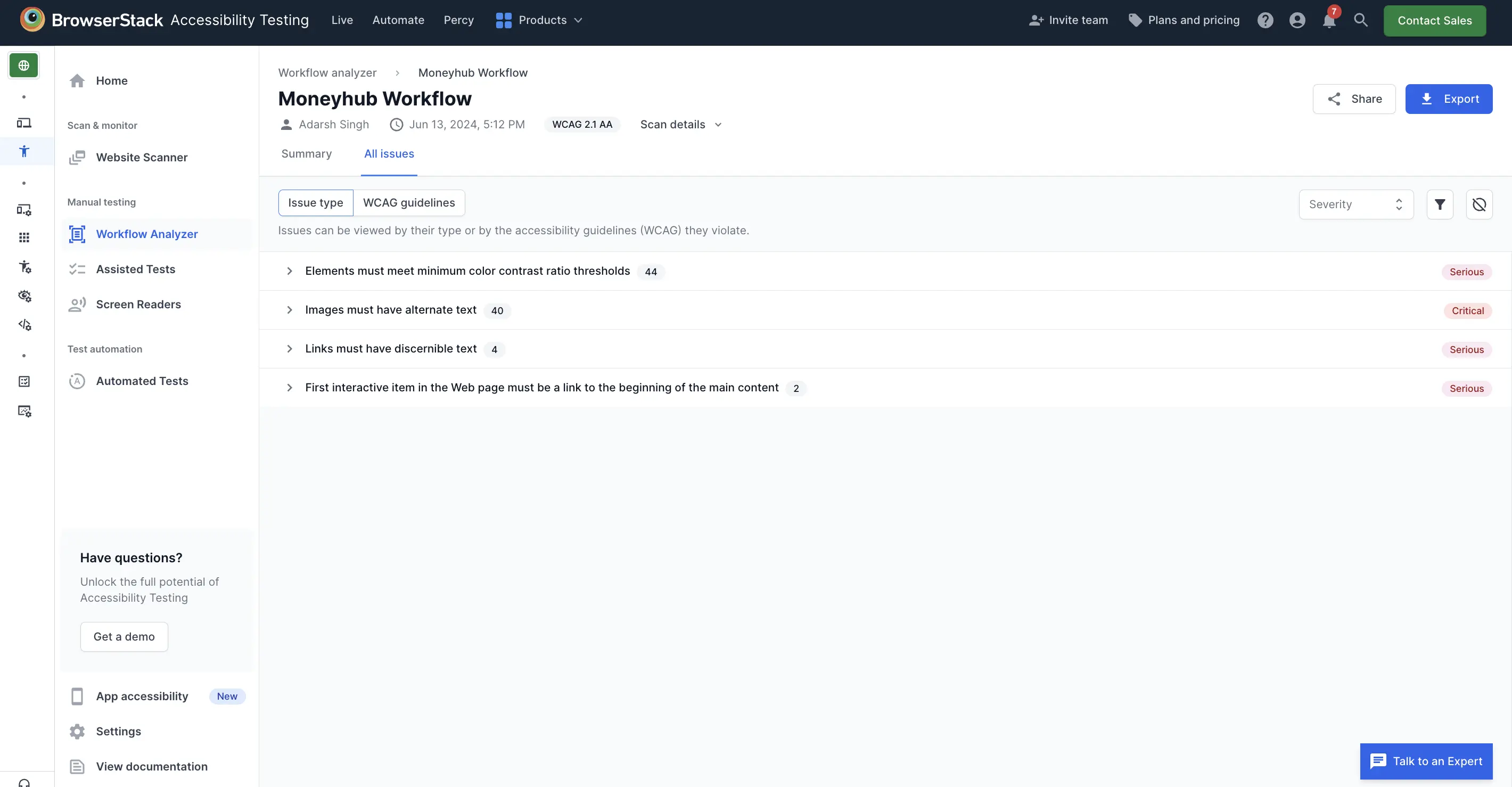 It also groups the issues according to WCAG violation that helps in the creation of a VPAT report.
