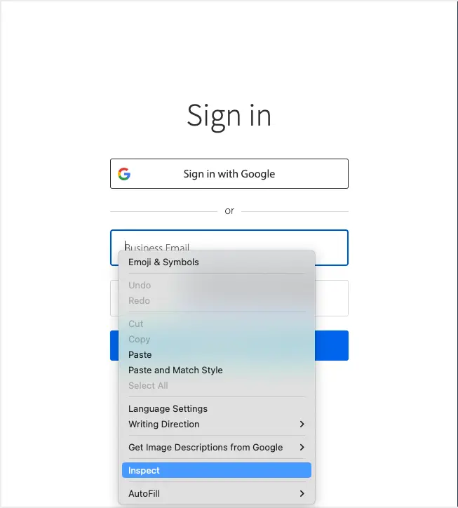 A CSS selector serves as a valuable tool for precisely locating elements within a web page. To discover the appropriate CSS selector, you can leverage your web browser’s inspection tools. We have demonstrated the process of identifying CSS selectors on BrowserStack Sign in page.