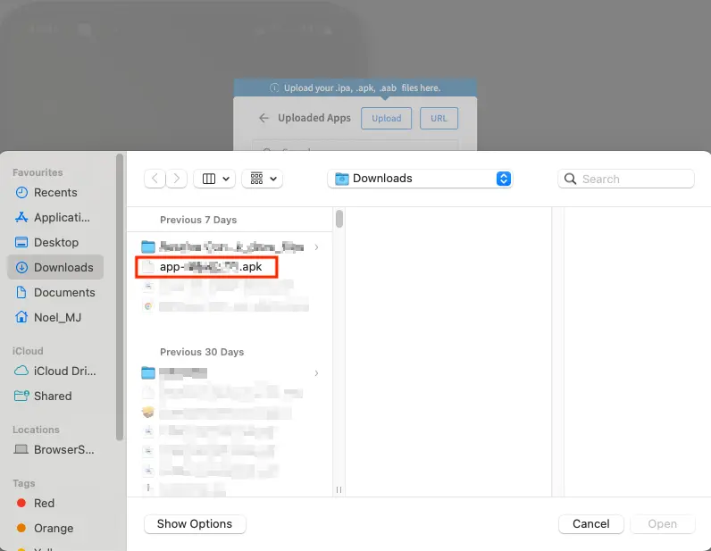 Upload files to BrowserStack real devices