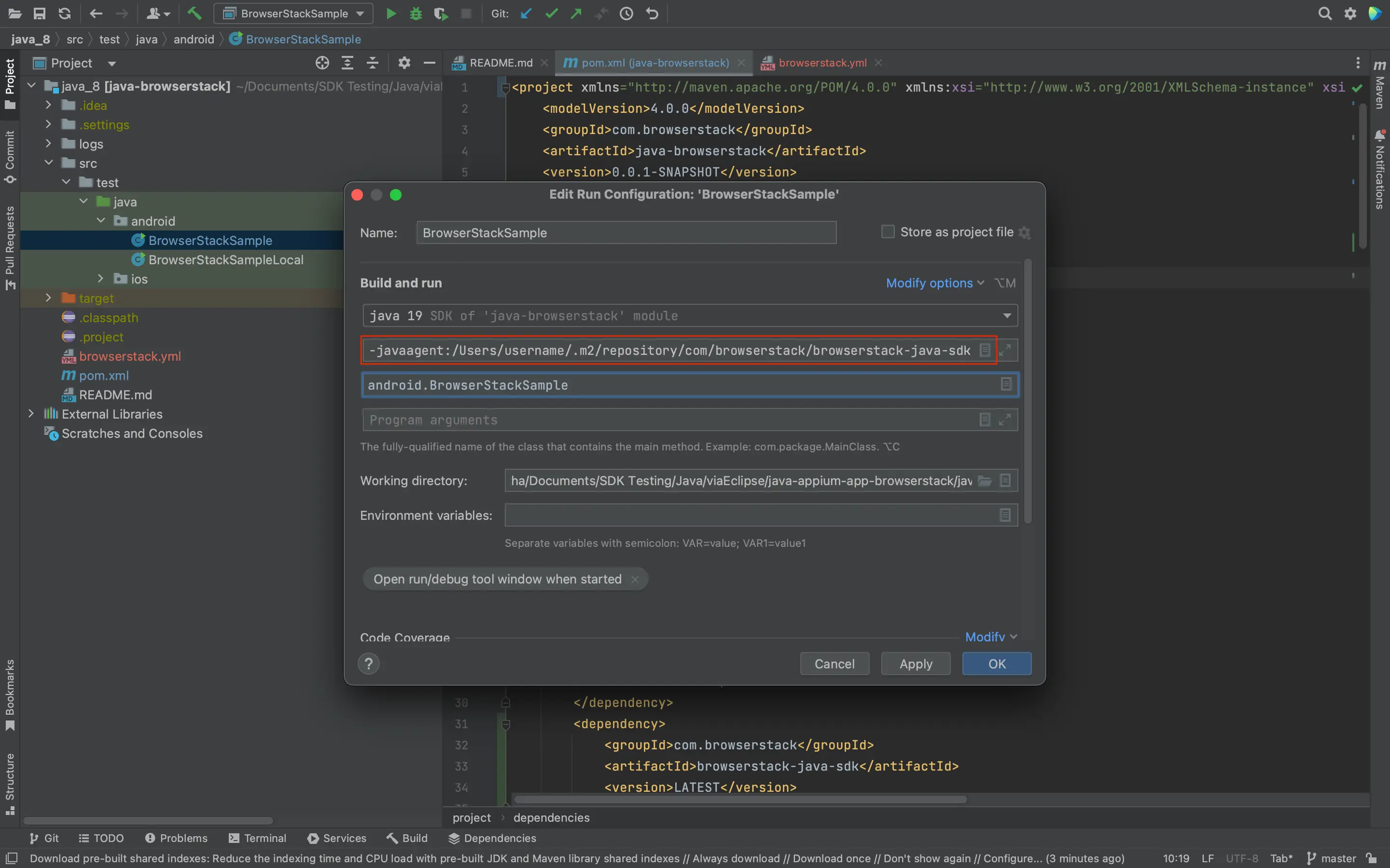 Add browserstack-java-sdk .m2 repository path in VM arguments