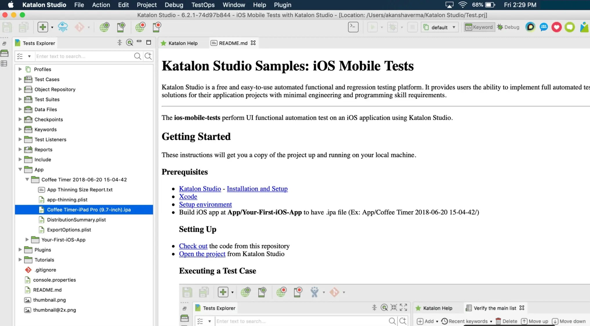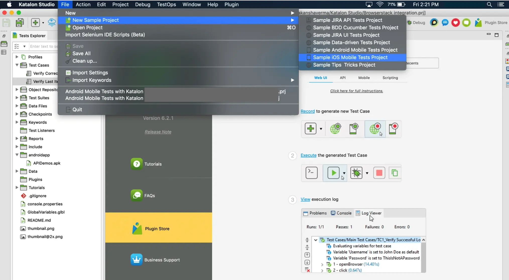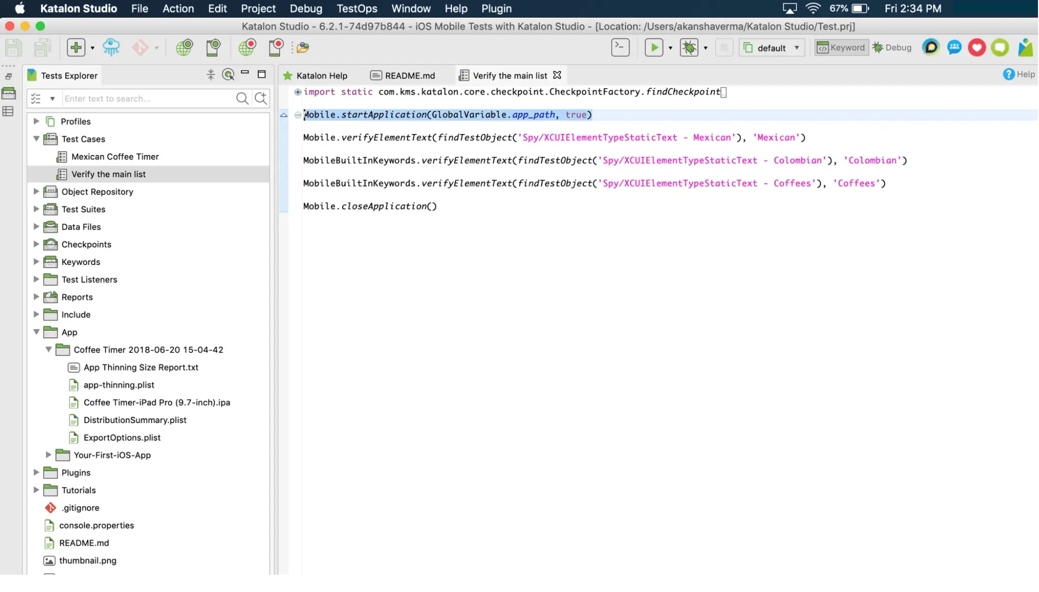 Download Katalon Studio by signing up for a free account at Katalon’s website. After installation, login to the Katalon Studio using your account credentials and create a new Sample iOS Mobile Tests Project. The process has been detailed for the sample app and test cases provided by Katalon, you can replace the app with your own app and make changes in your test cases accordingly.