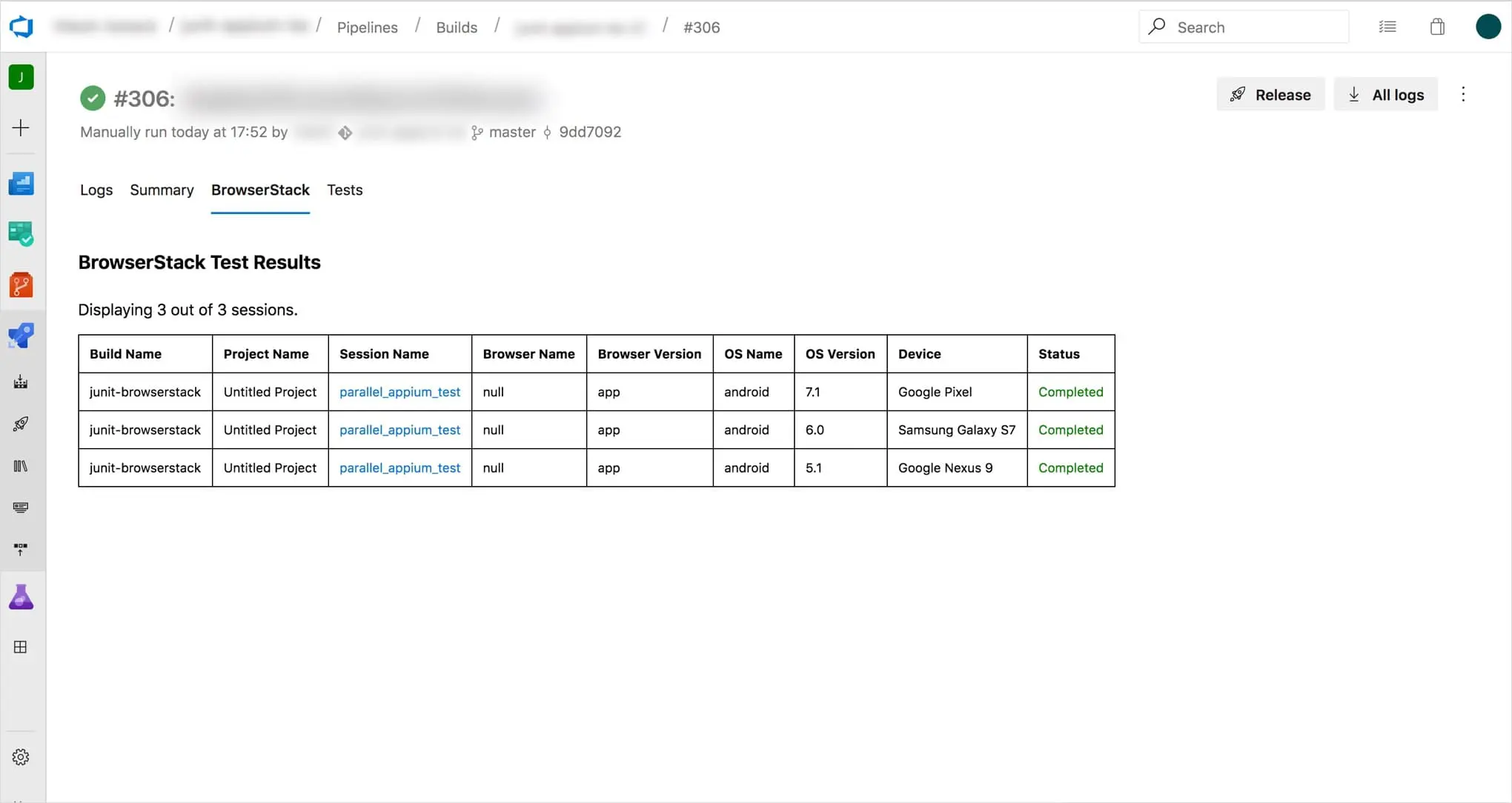 Once you have completed the above steps, you can configure your Azure Pipelines setup to embed all the BrowserStack Appium reports and logs.