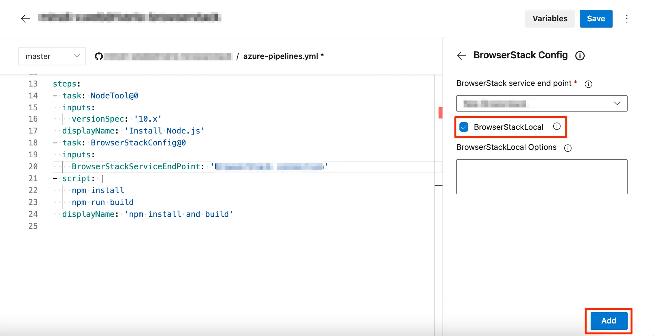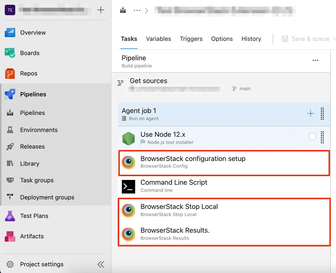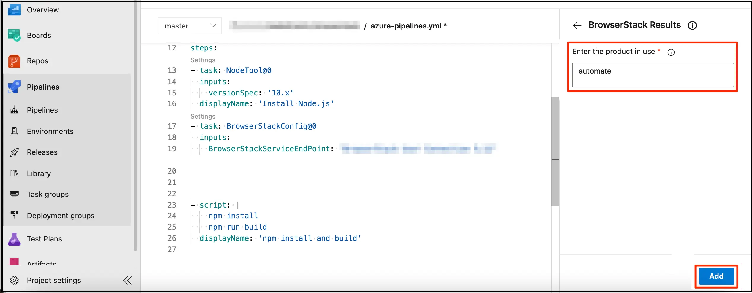 For your tests to run on BrowserStack, the Azure Pipeline needs additional information, such as BrowserStack credentials.