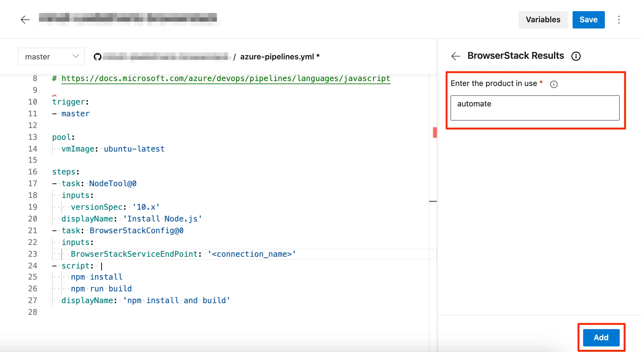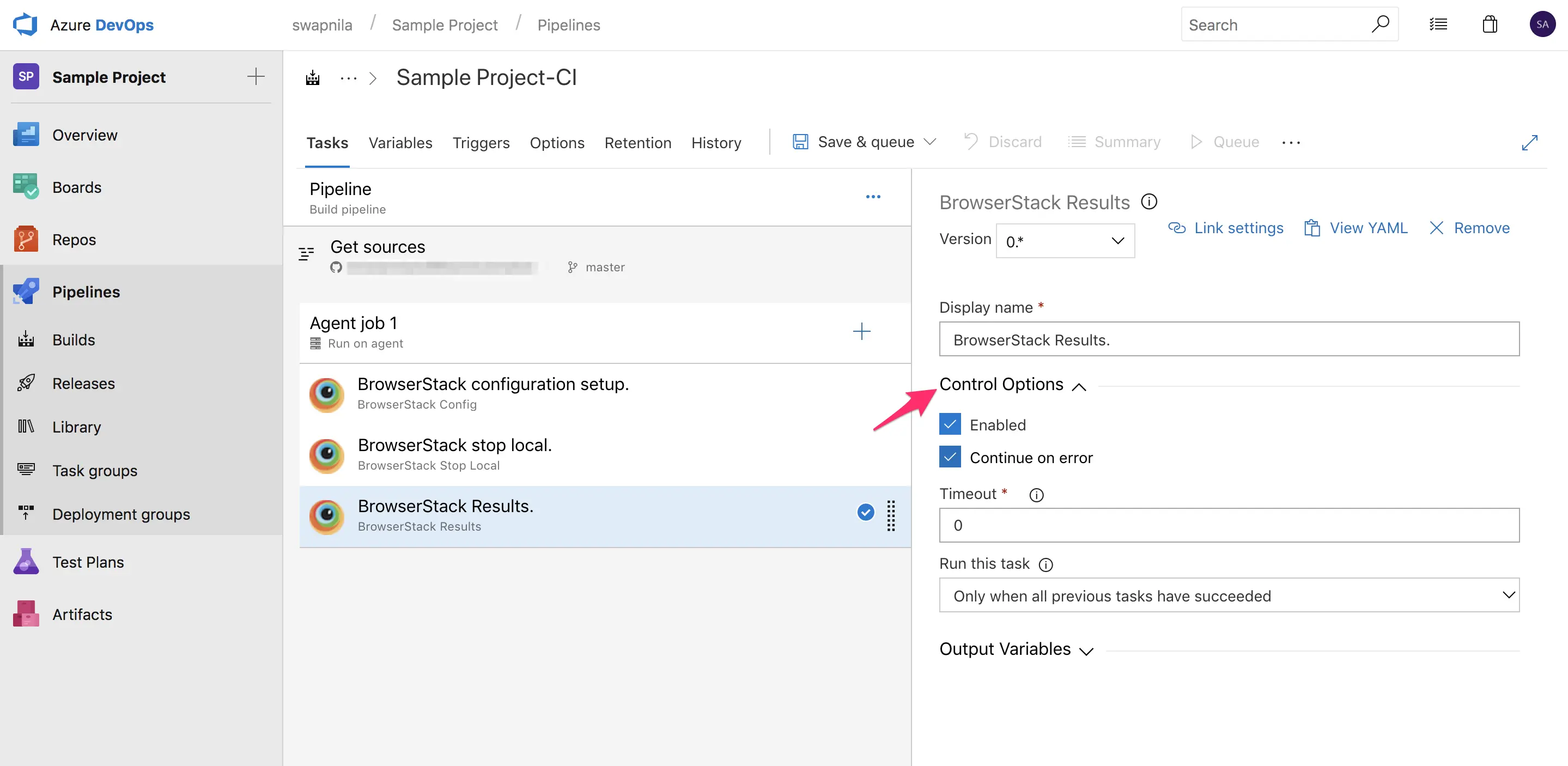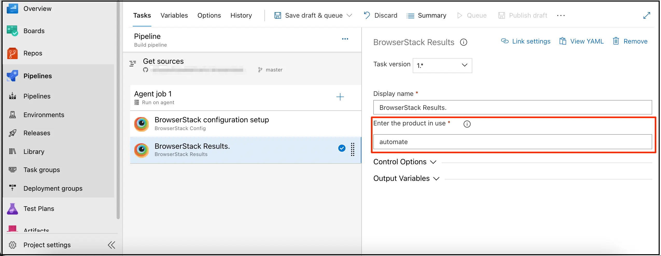 For your tests to run on BrowserStack, the Azure Pipeline needs additional information, such as BrowserStack credentials.