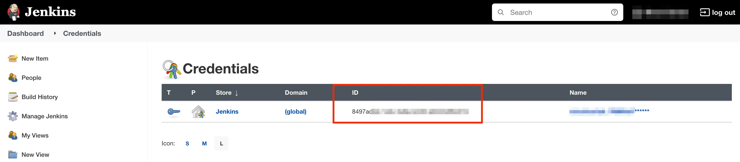 - In the Credentials section, note down the ID of the credential shown in the ID column. This ID will be used in the