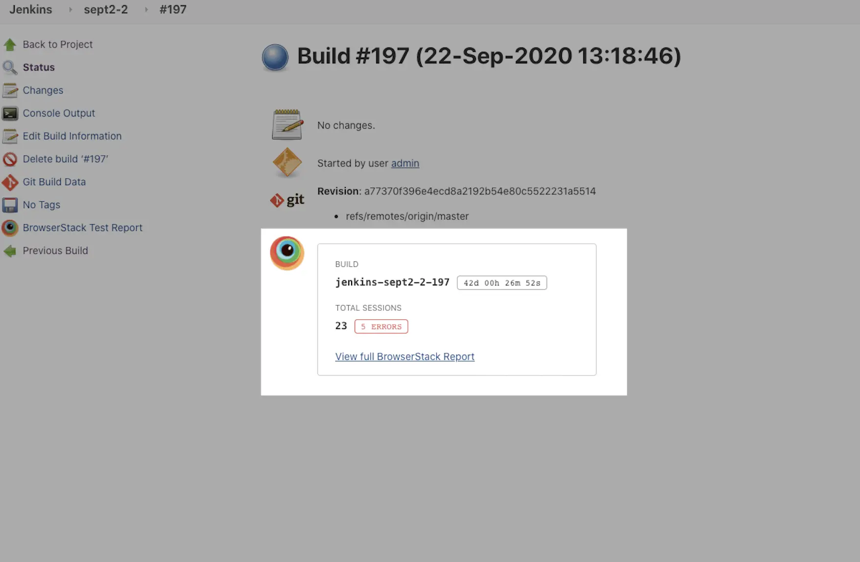 With this integration, you can now view the results of your tests run on BrowserStack within Jenkins.