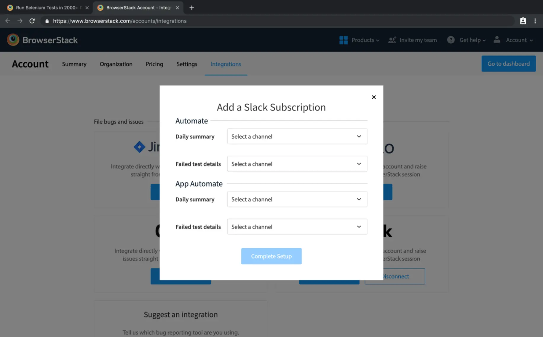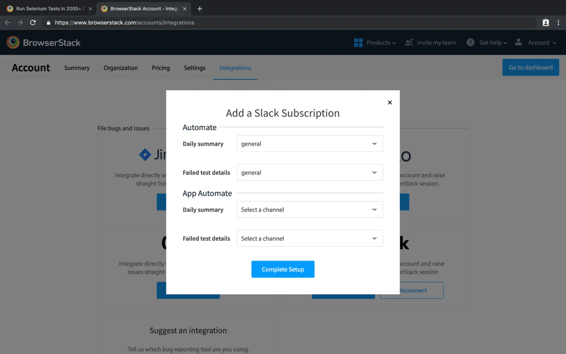 Integrate BrowserStack App Automate with Slack