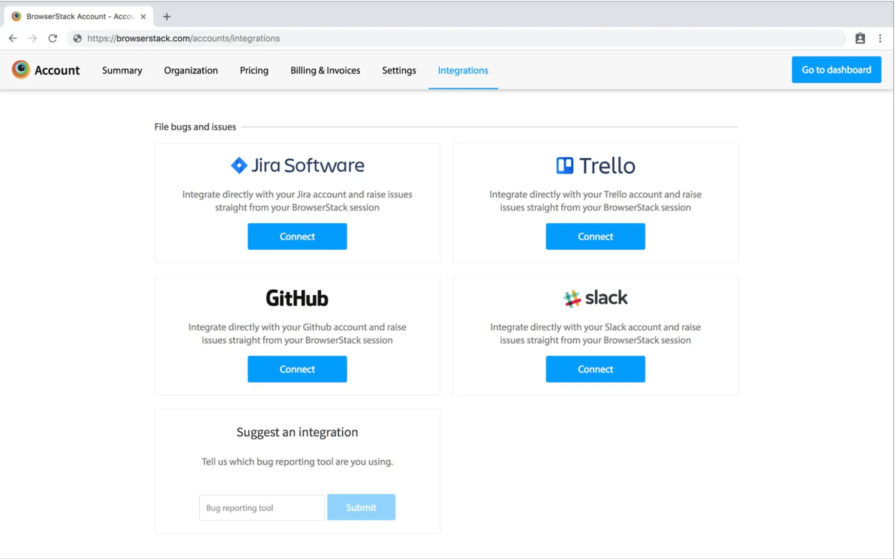 Integration with Slack has been kept as a simple one-click process. Following are the steps to integrate Slack with BrowserStack: