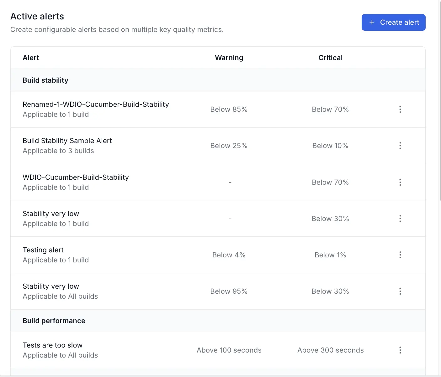 Alerts: Configure threshold-based alerts to get notified via email and Slack. These alerts and notifications help you stay informed if any QA thresholds you set breach.
