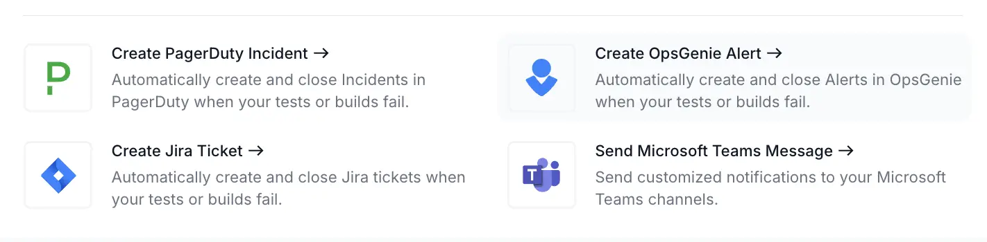Ops monitoring: Configure webhooks to automate ops monitoring by integrating popular tools. You can create powerful and customizable workflows with ops monitoring / notification tools like PagerDuty, OpsGenie, Jira, and MS Teams.