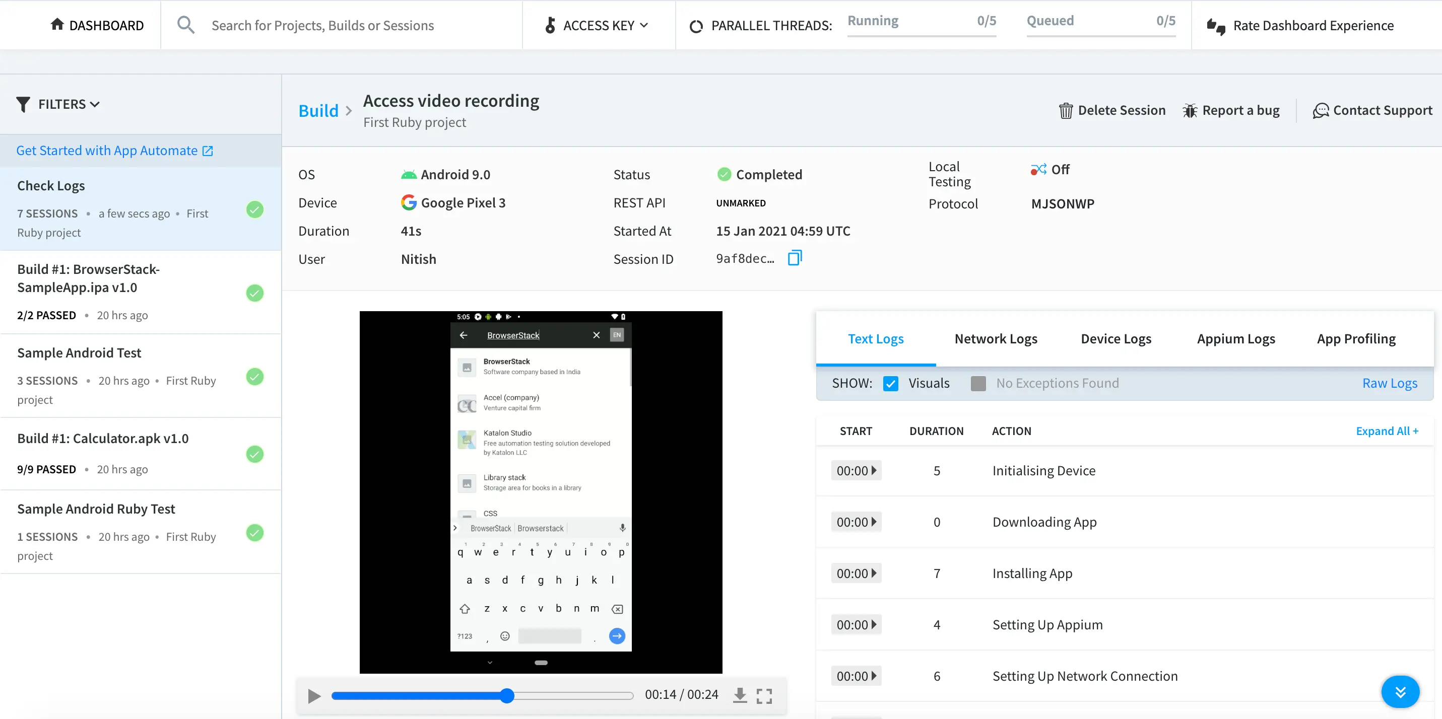 To access the video recording for your test, in the App Automate dashboard, go to your build.