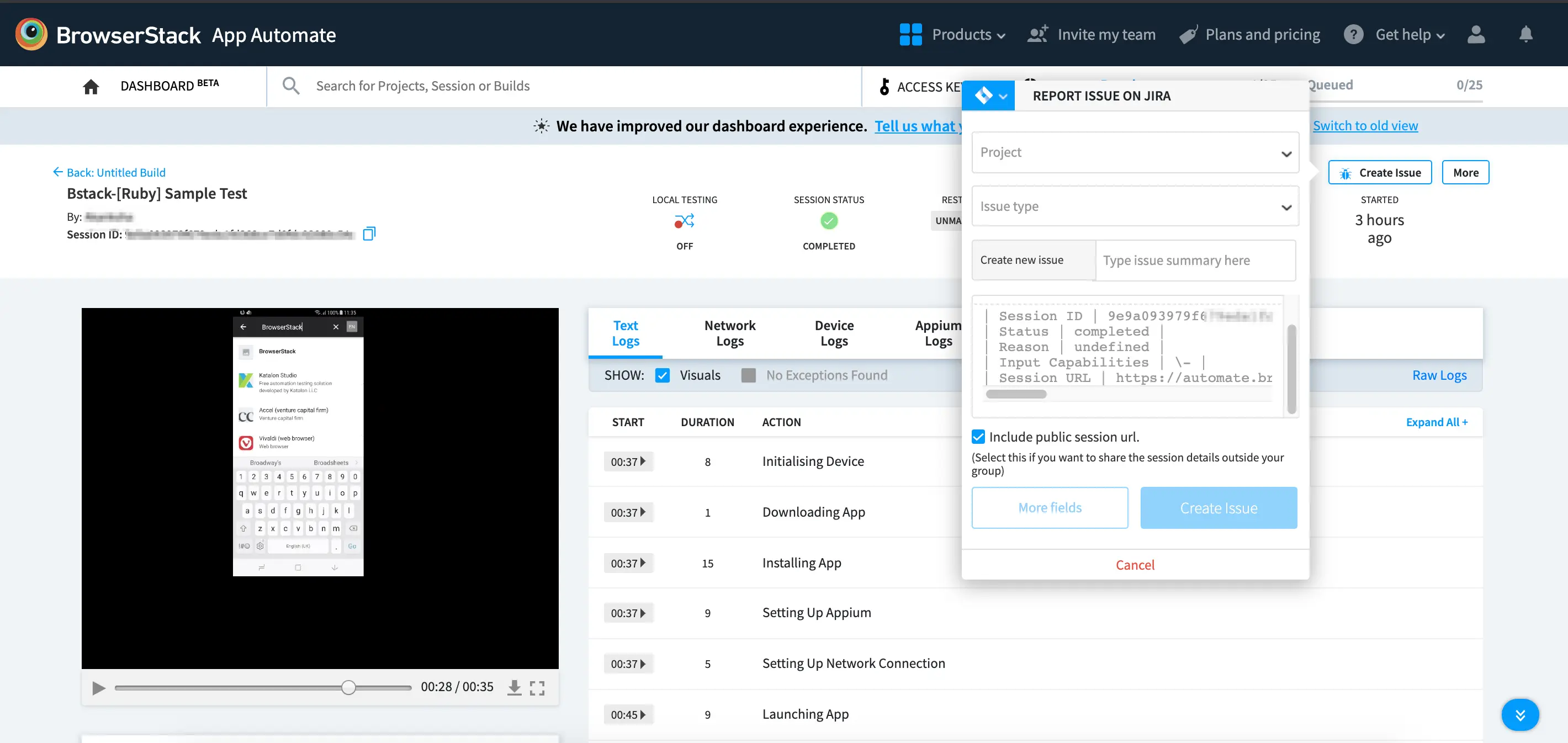 BrowserStack provides integrations with multiple tools, to help you easily file bugs while you are testing your mobile apps on the BrowserStack platform.