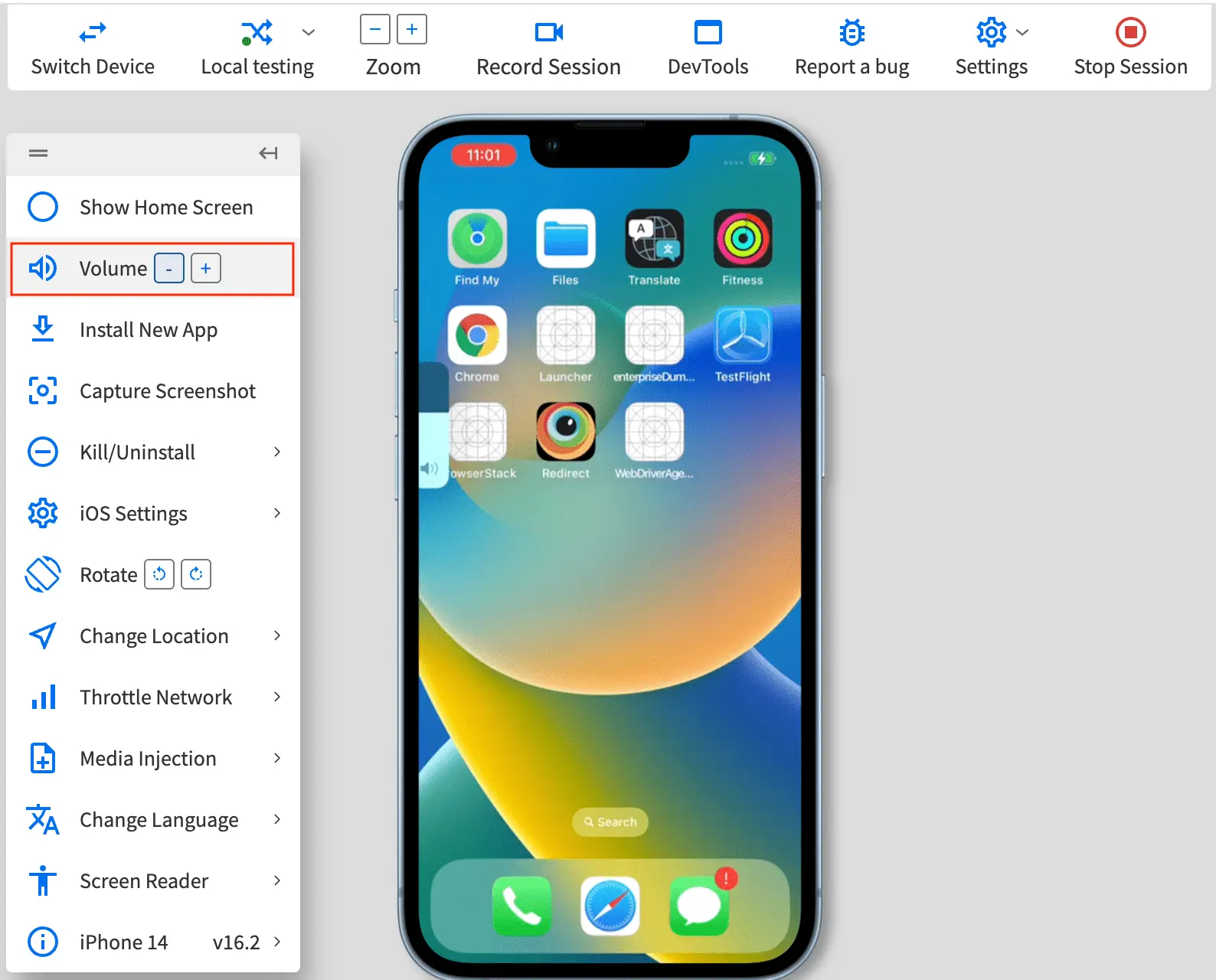 App Live enables you to increase or decrease the volume on select BrowserStack real devices, to test use cases for your app that require sound testing through volume control.