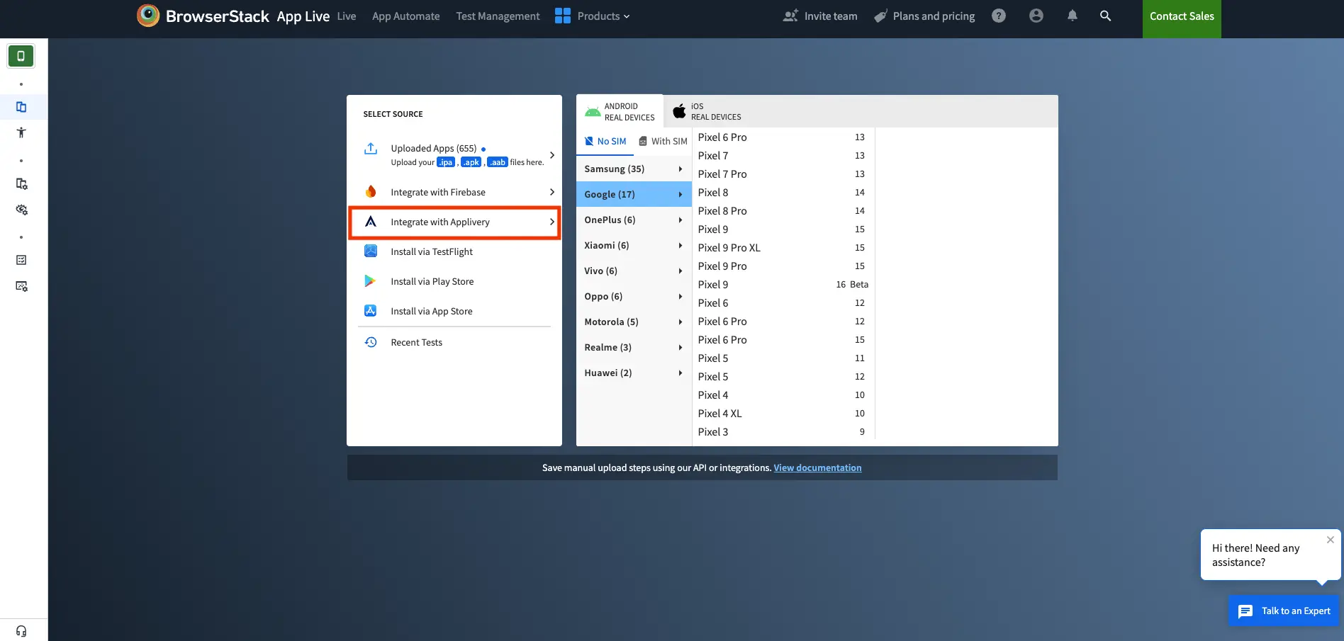 Applivery is a platform for managing, distributing, and testing mobile apps. You can seamlessly distribute your app builds and test them on App Live by integrating Applivery with App Live. After integration, you can add your Applivery workspaces to App Live, share them with your team, and collaborate on testing. Your team can then access and test apps in the shared workspaces, streamlining the testing process within the App Live.