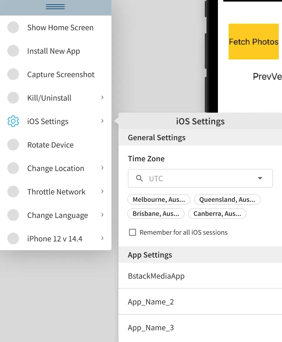 Access app settings in BrowserStack real iOS devices