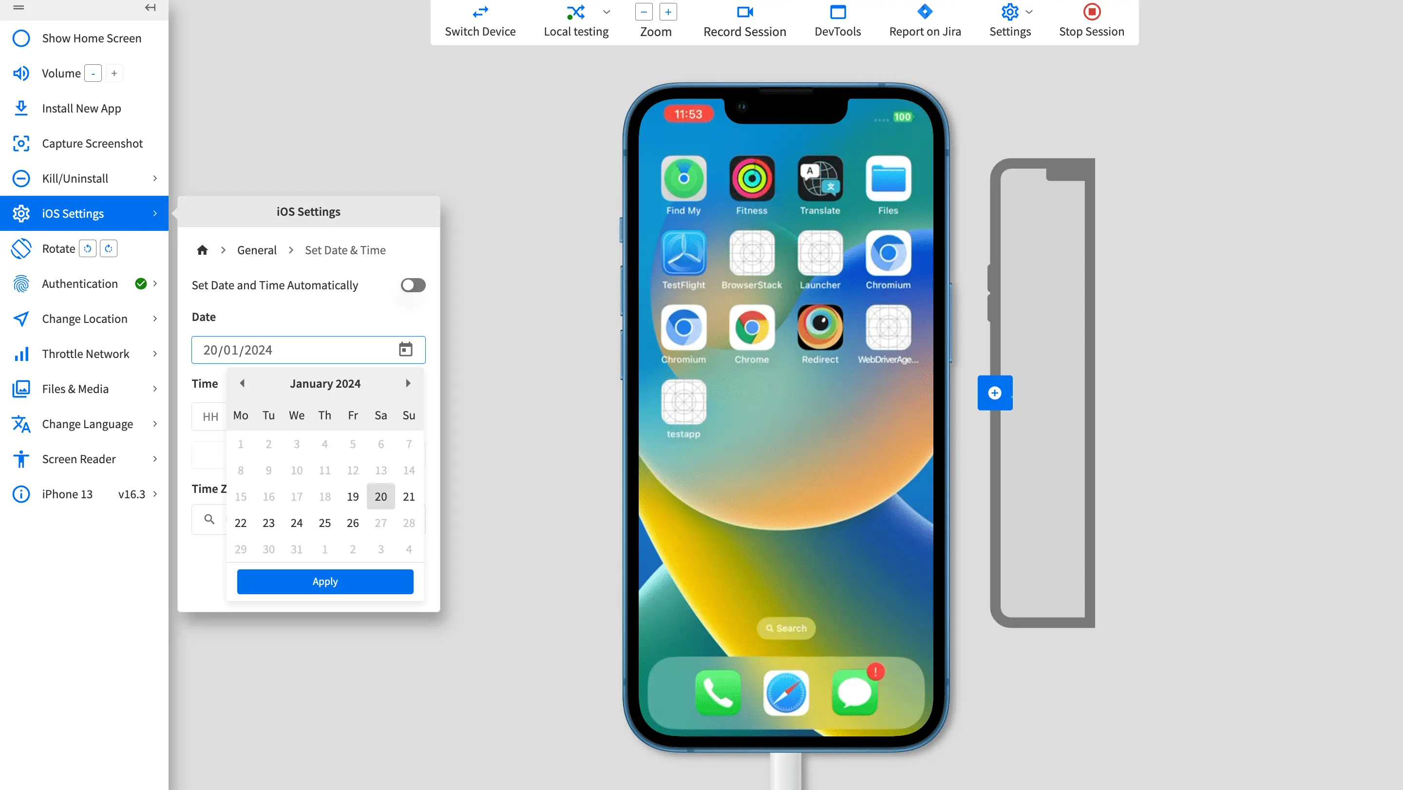 Set device date, time, and time zone on BrowserStack real devices