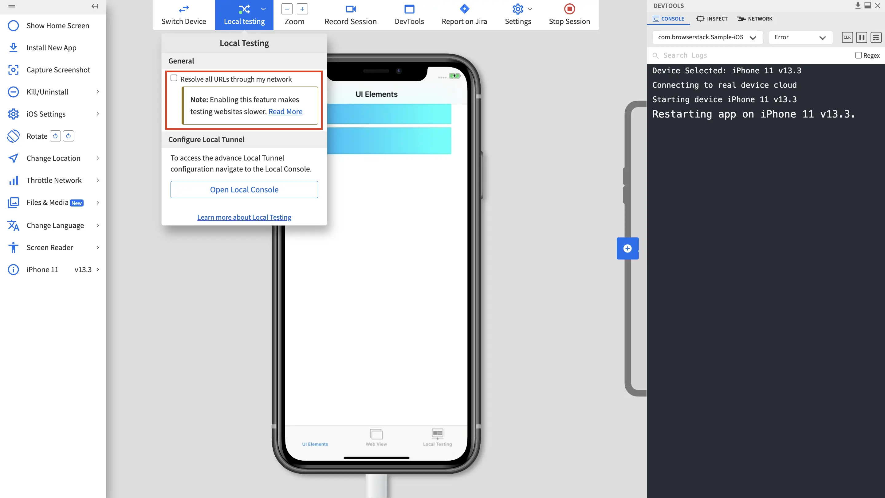 After you enabled the Force Local flag, BrowserStackLocal resolves all the web traffic through your local network.