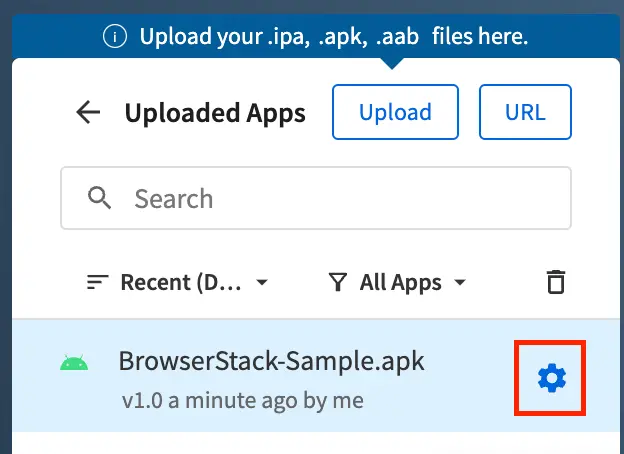 Ensure that the app you are uploading is associated with an OBB file. - Click the configuration icon near the