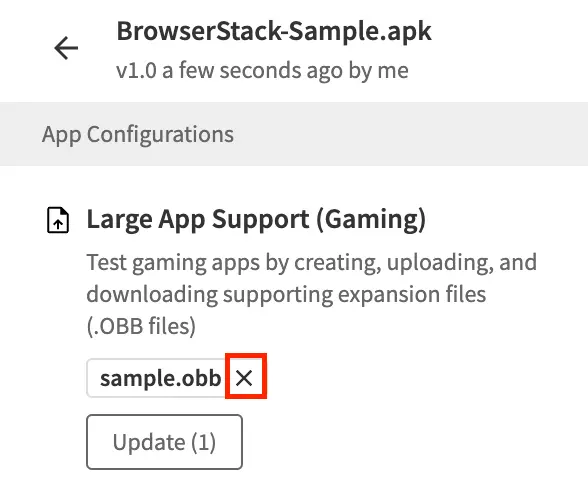 If you make updates or changes to the data stored in the OBB file associated with your app, you can replace the OBB file that you uploaded on the BrowserStack real device, with the updated OBB file.