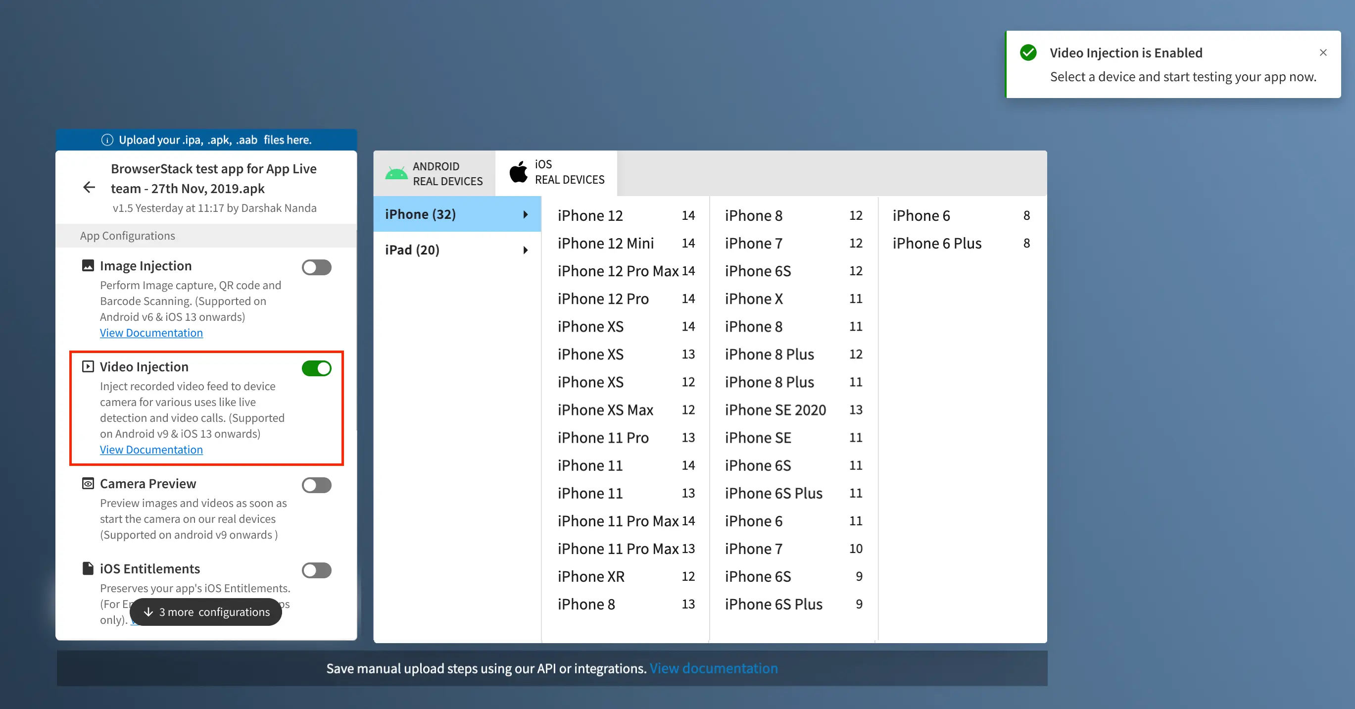 Enable Video Injection for your app