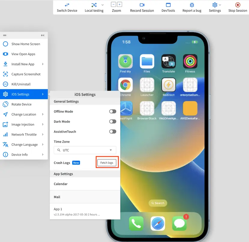 Download crash reports on BrowserStack real iOS devices