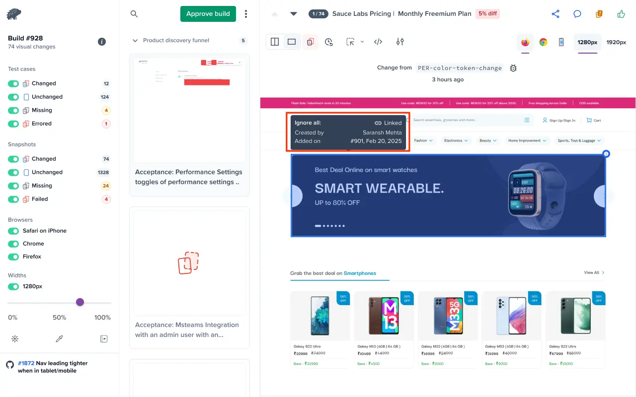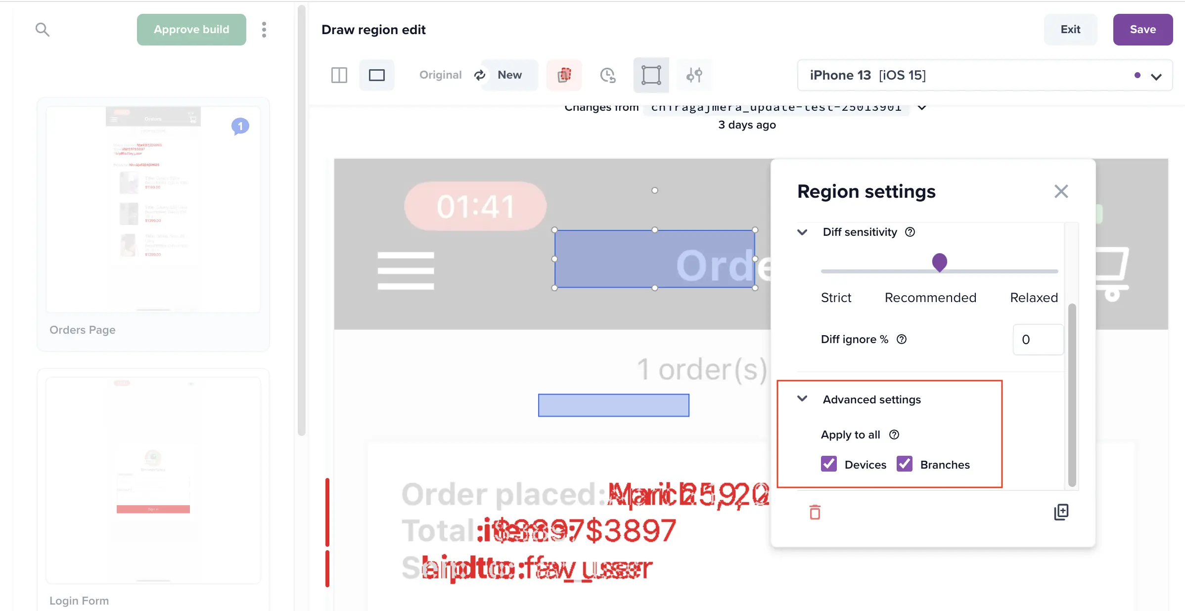 - Use Ignore Regions for elements with dynamic content, such as timestamps or user-generated text.
