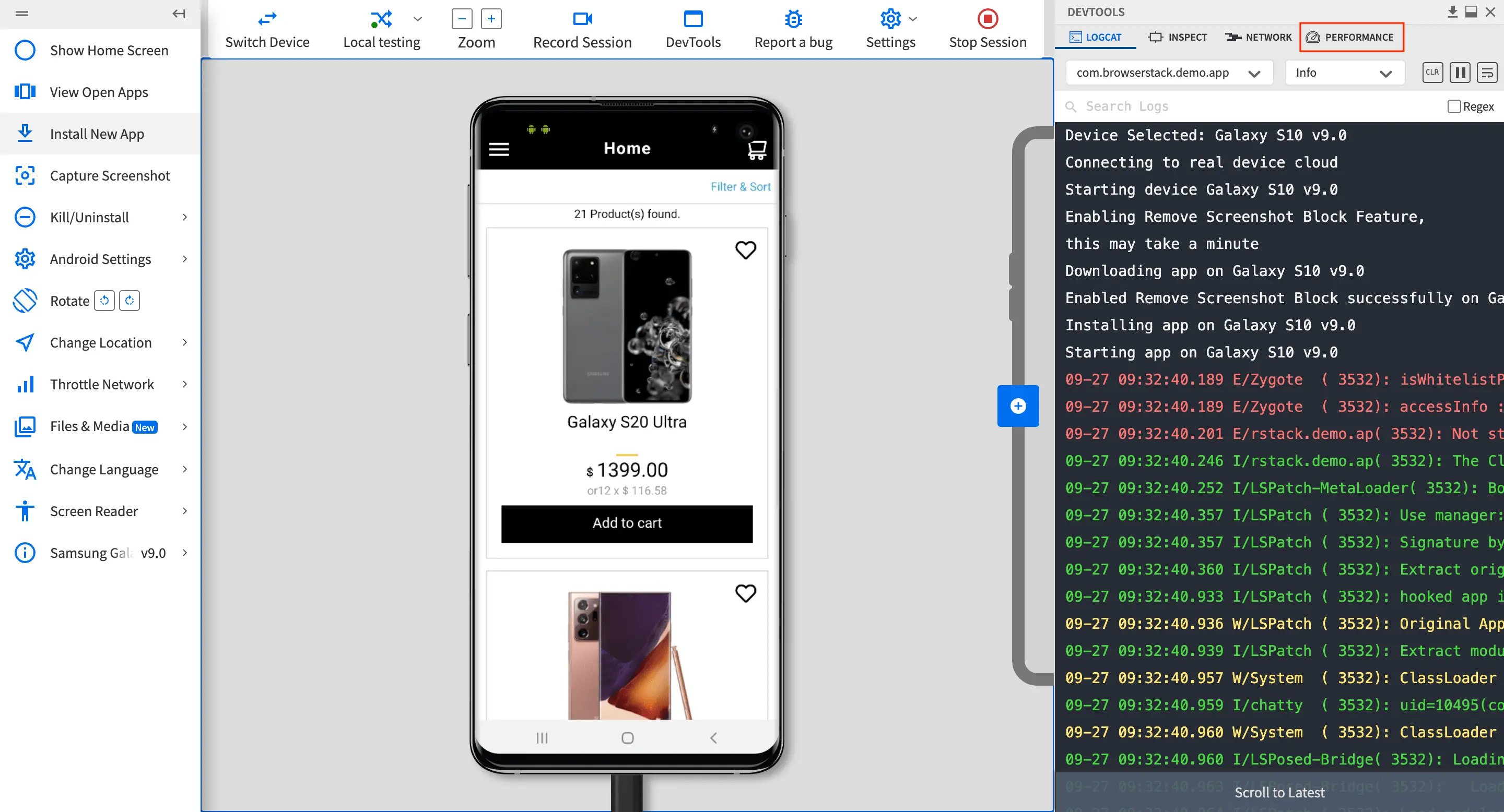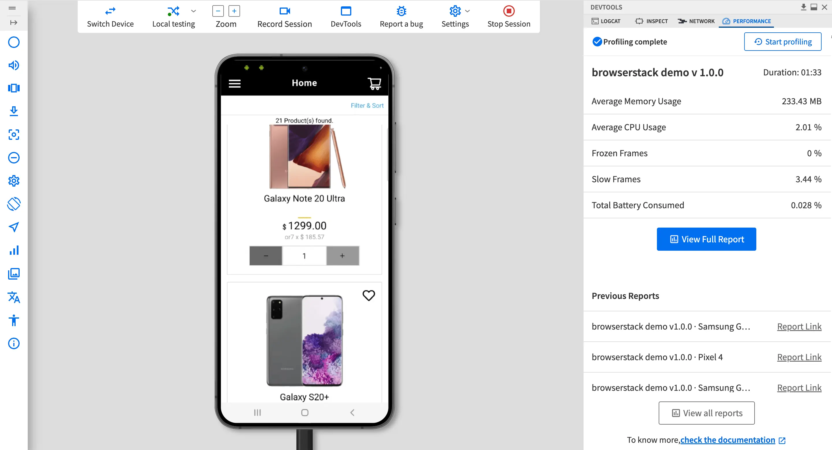 App Performance Testing analyzes the app performance against several industry-standard metrics such as Frames Per Second (FPS), Application Not Responding (ANR) rate, app & page loading times, device resource usage, and more. Once you have identified these issues, you can fix them and release a performant app, ensuring better user experience and adoption.