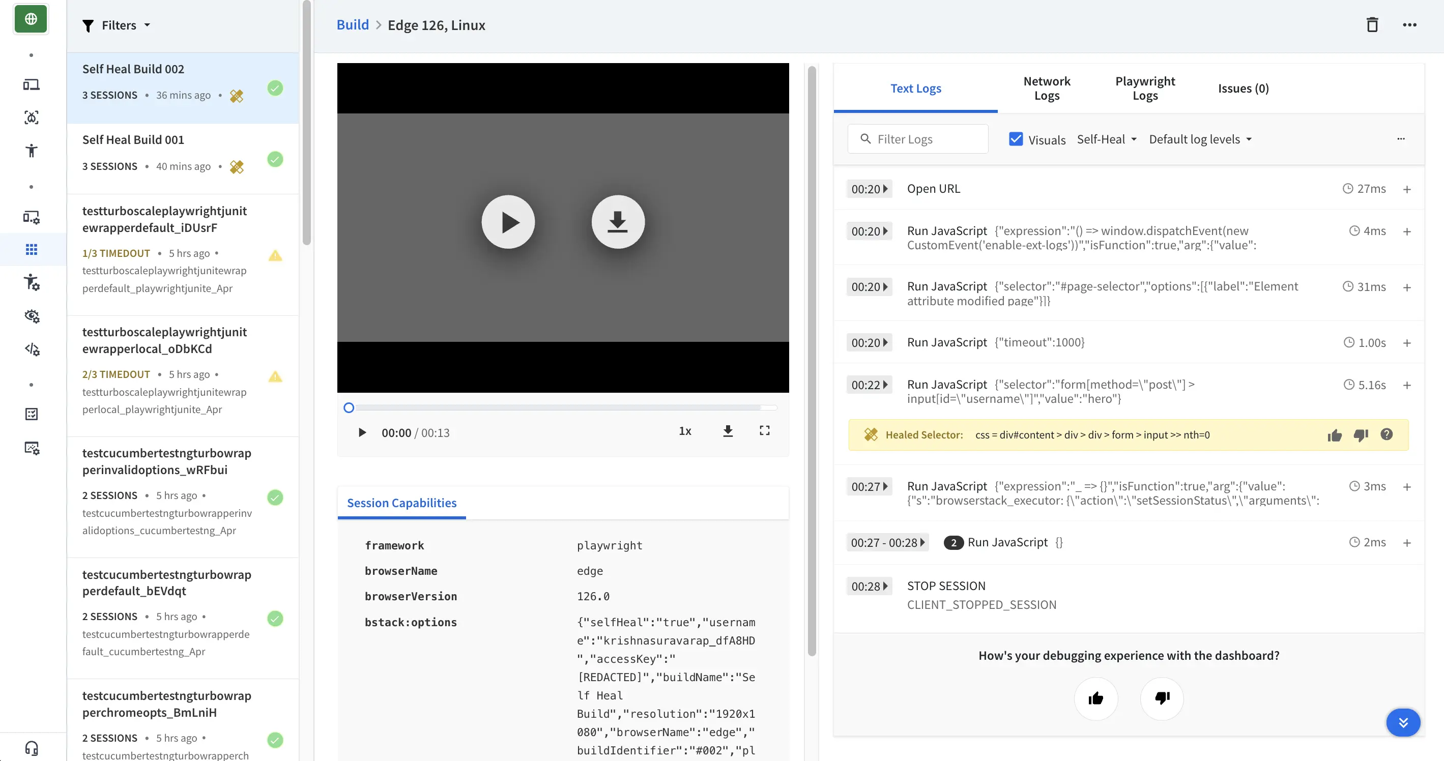 elementIdentifiervalues across successful and failed builds. - Make sure your success case runs first so that BrowserStack can register the element context before attempting to heal failures.