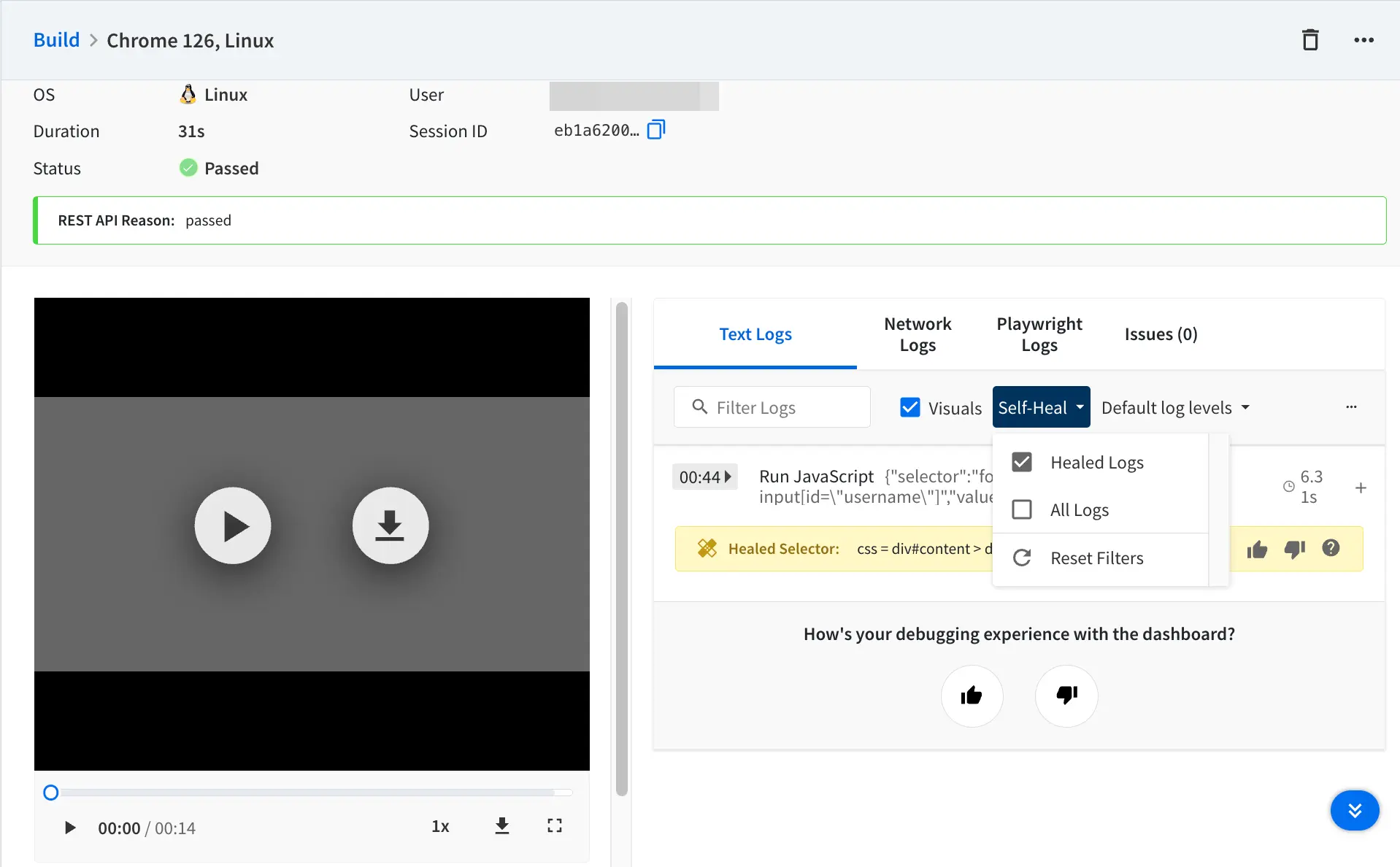 You can view these self-healed locators in the Text Logs tab of your session masked by the self-heal icon