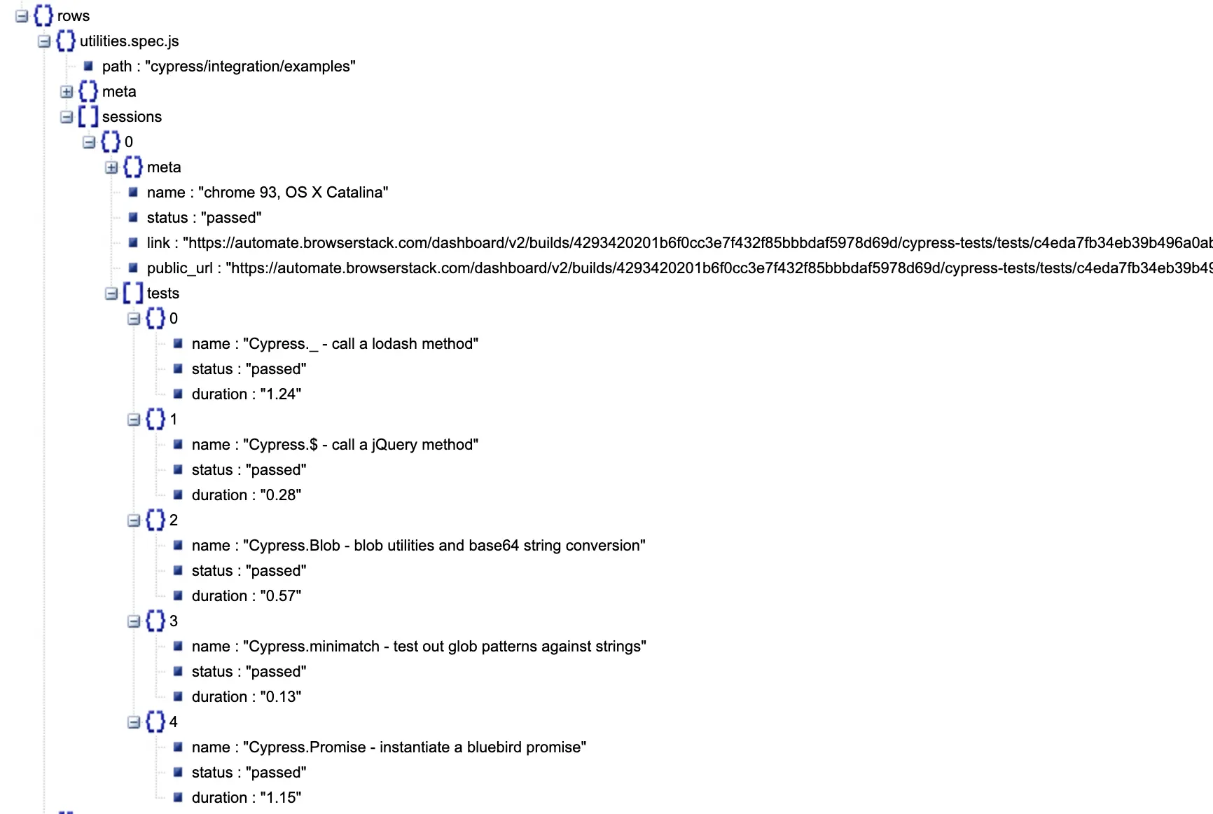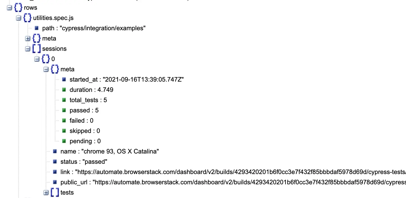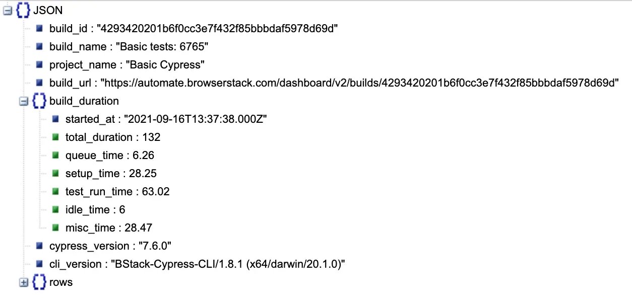 The BrowserStack JSON report for your Cypress build includes very rich information which includes the following: