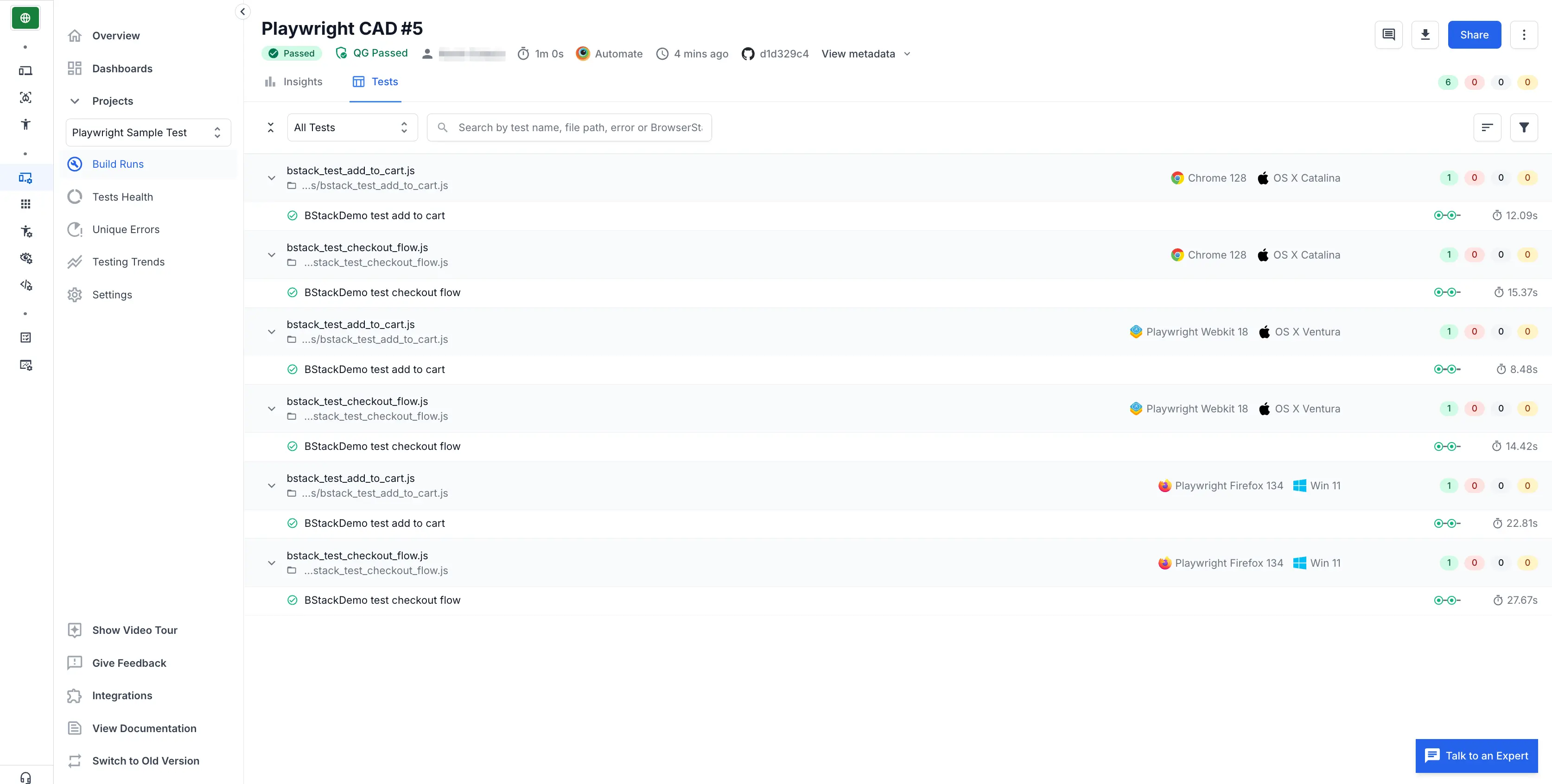 View your tests on the BrowserStack Automate dashboard. To learn more about the dashboard, check the view test results document.