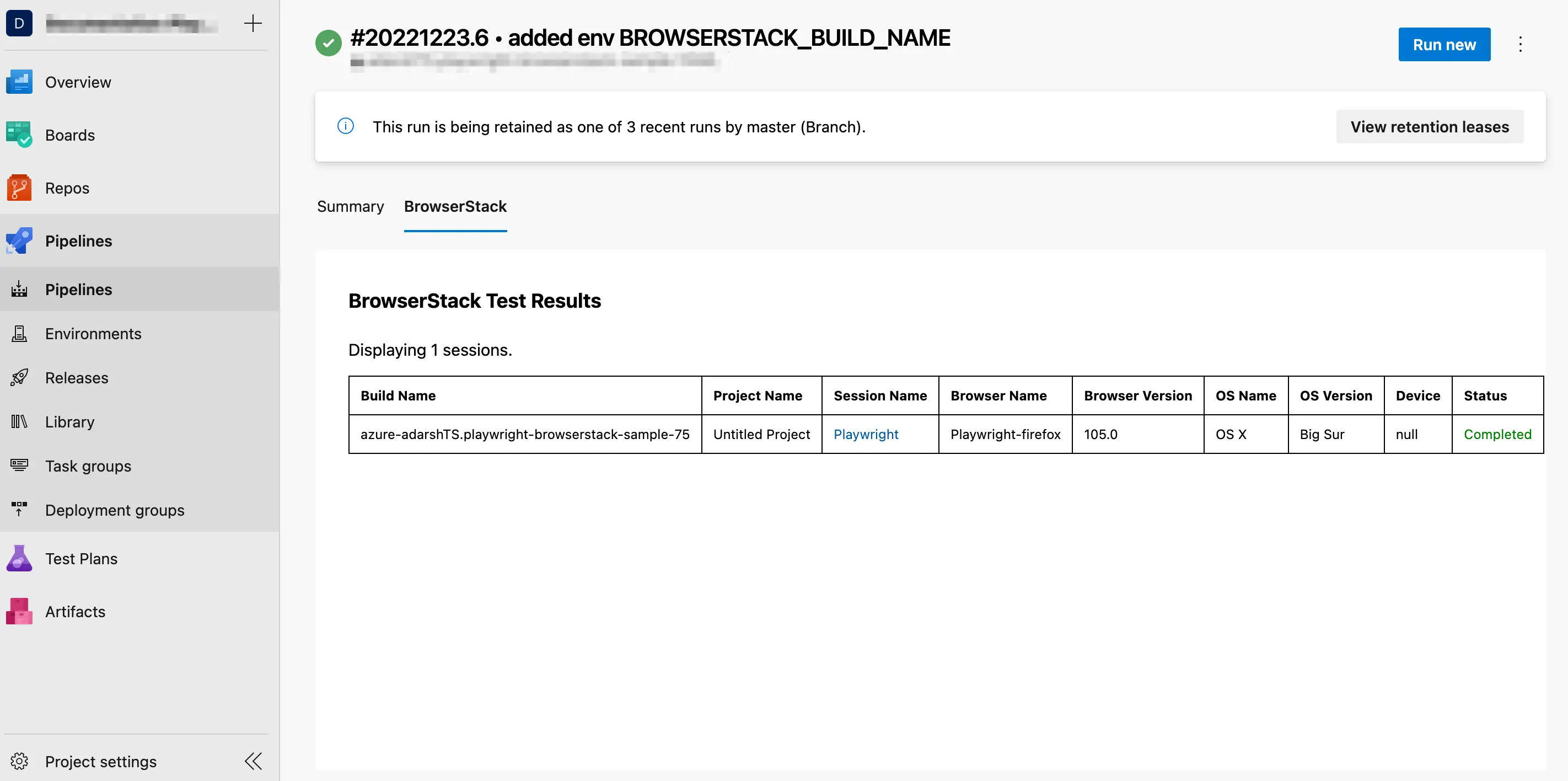 With this integration, you can now start testing your web applications and view your test results within Azure Pipelines. The following image shows how the test results appear in Azure Pipelines: